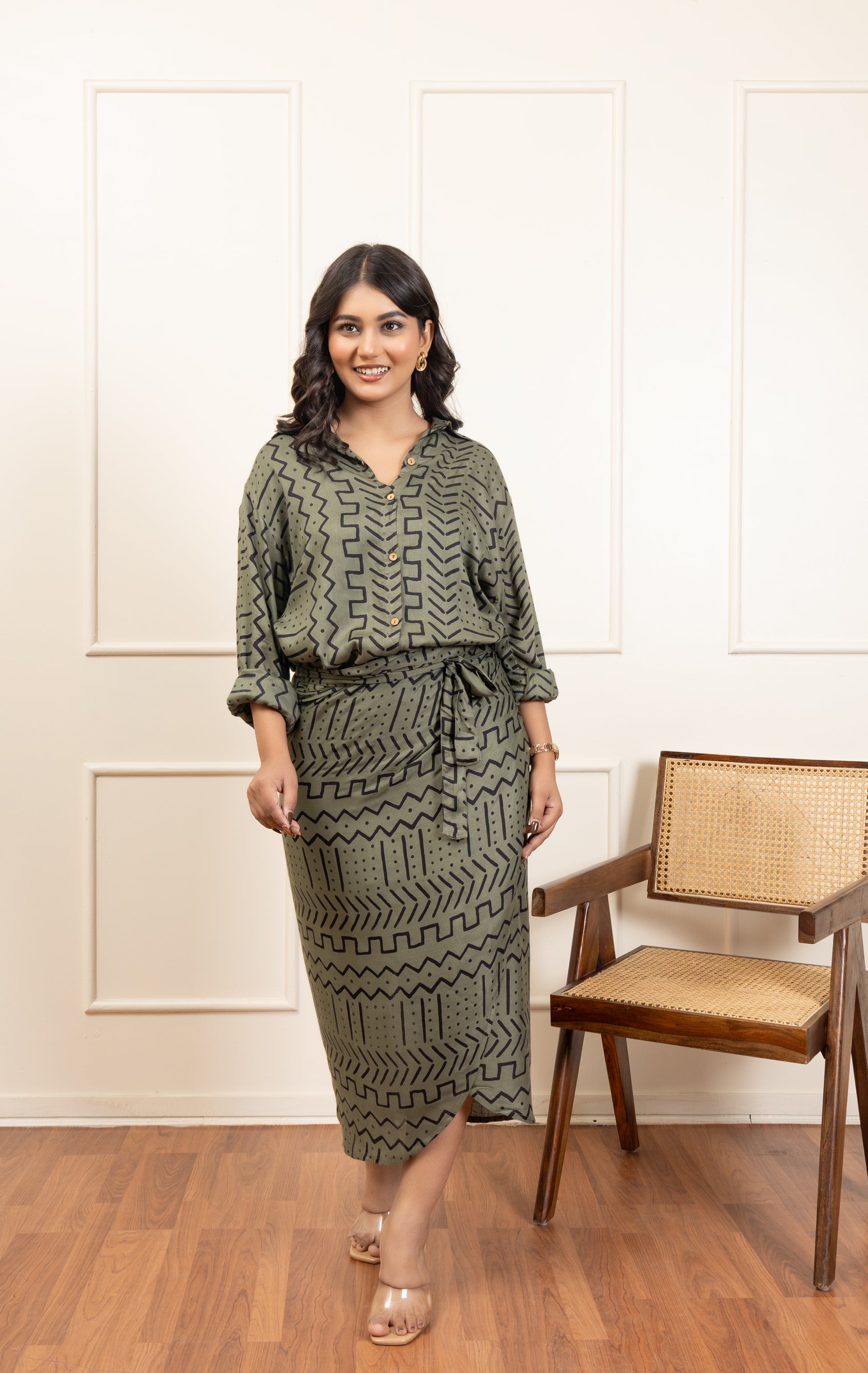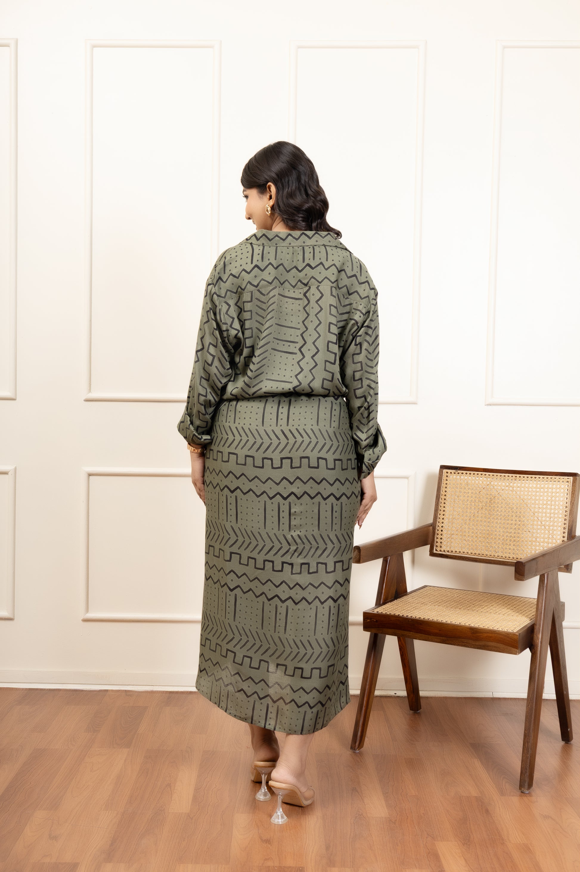 A versatile co-ord set designed to let you style it your way. Featuring a chic printed skirt paired with a matching button-down overlay, this set gives you endless styling options. Wear it with the black tube top for a bold modern vibe, keep it simple with the overlay for a modest look, or mix and match for a casual-chic appearance. Perfect for brunch, outings, or evening gatherings, this co-ord set is all about effortless elegance and versatility.